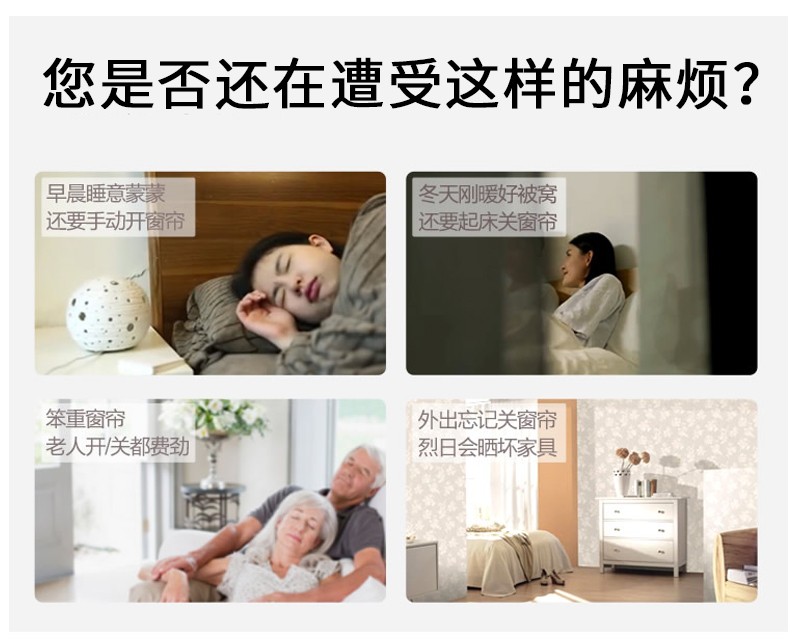 此產品適用于卷簾、柔紗簾、香格里拉簾,改變傳統窗簾手動拉升,調節遮光的方式,通過語音控制、手機APP控制、遙控控制等手段,讓您悅享智能生活帶來的便捷與樂趣!