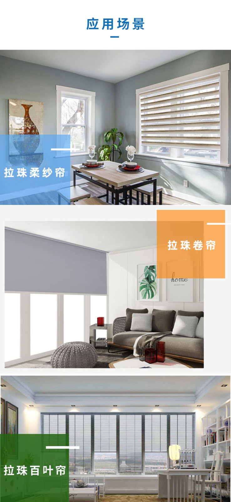此產品適用于拉珠卷簾,可以把傳統的拉珠卷簾改變為智能電動窗簾,安裝簡單,操作方便。安裝后可通過遙控器、語音、手機APP等控制窗簾升降。